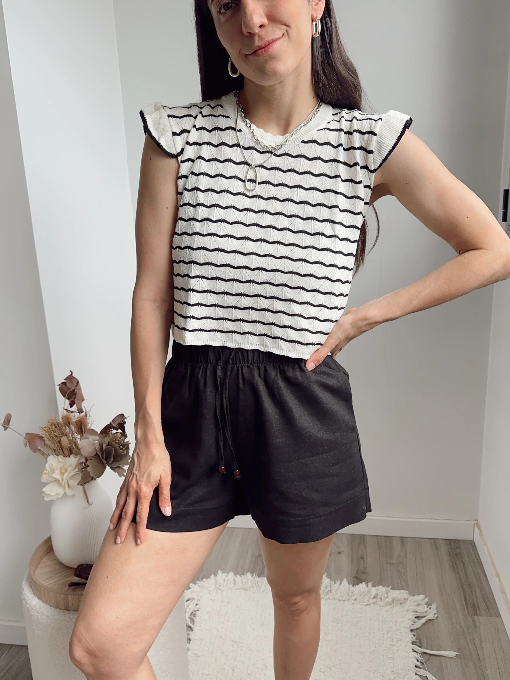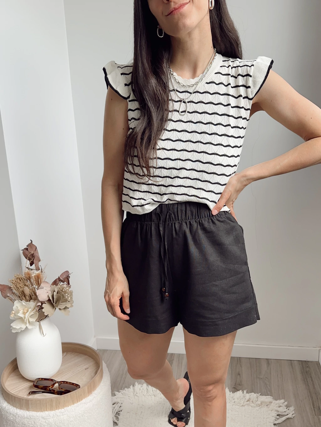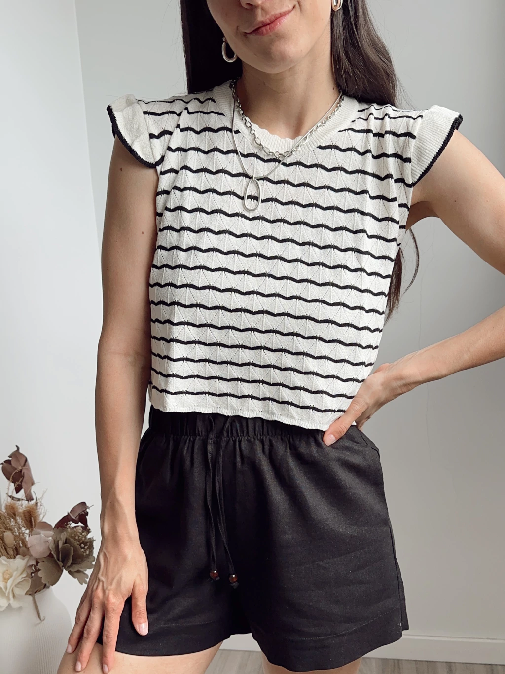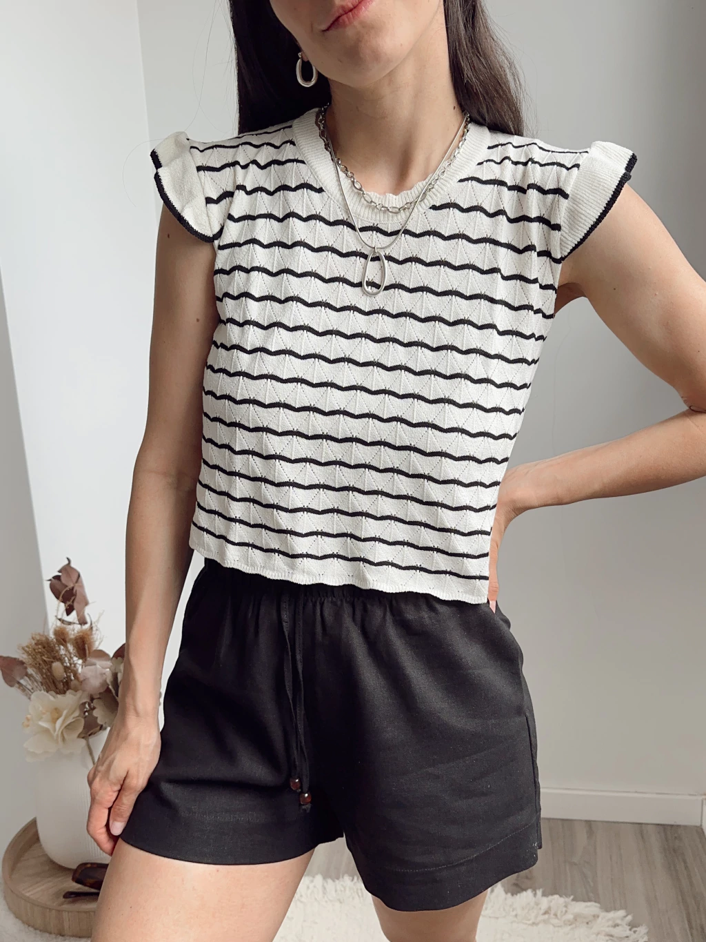 Musculosa de hilo cuello redondo rayada con volados en hombros