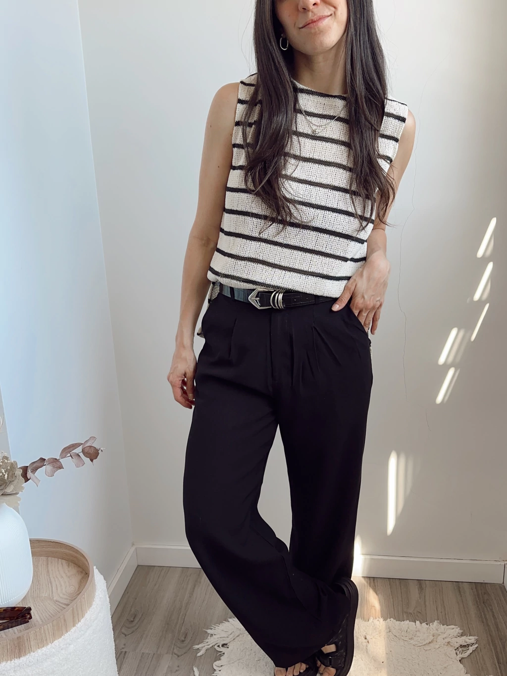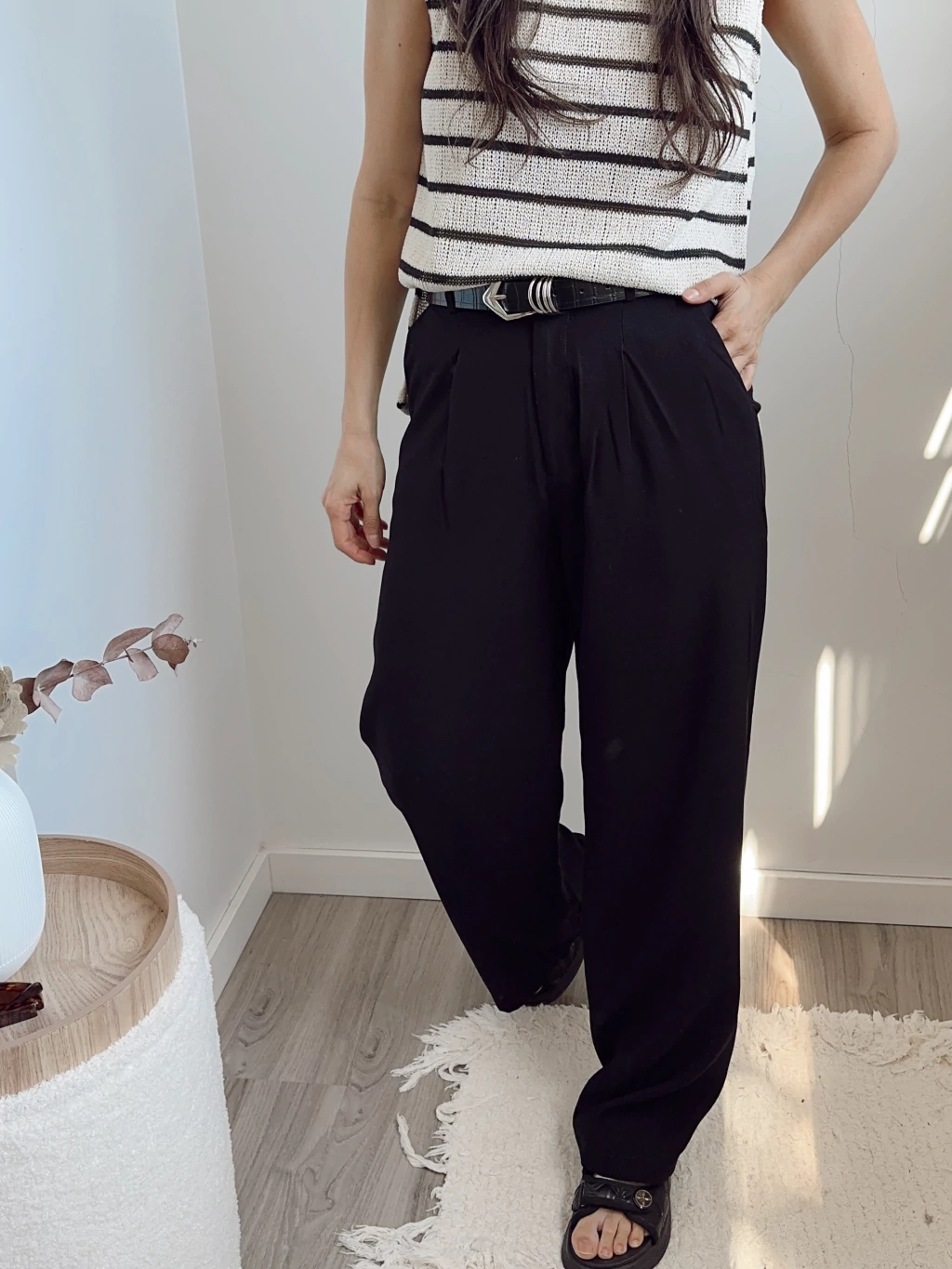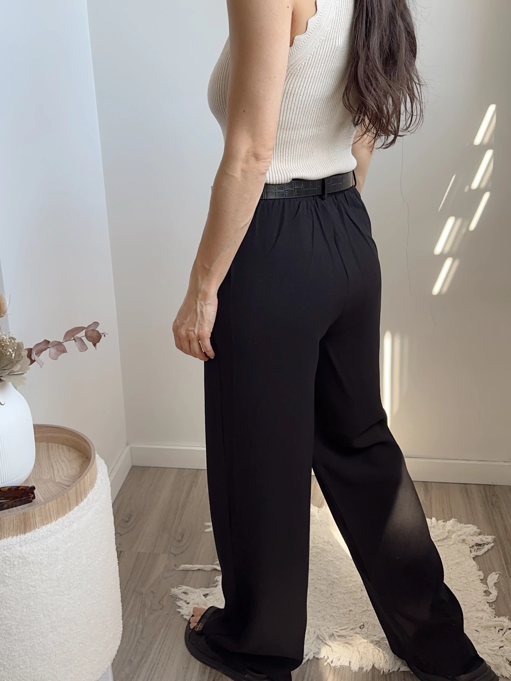 Pantalon sastrero wide leg con pinzas, elastico en cintura.